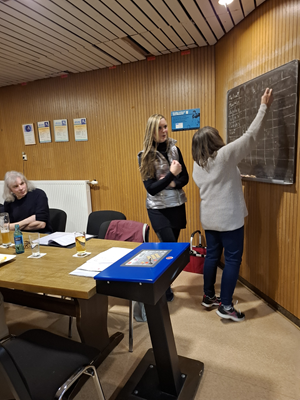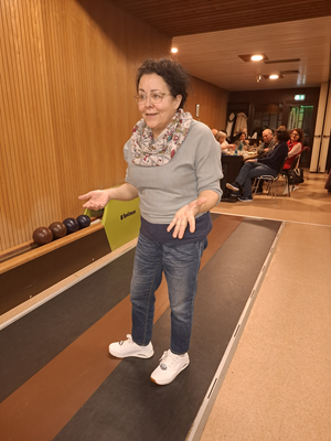 Das ist der traditionelle Gruß für alle Kegler – der Wunsch für ein erfolgreiches Spiel und einen gelungenen Wurf beim Kegeln. „Gut Holz“ bezieht sich auf die alten Holzkegel, heute sind diese eher aus Kunststoff. “ Alle Neune“ bedeutet den Volltreffer. Mit einem Wurf werden alle neun Kegel abgeräumt. Es klingt sehr einfach, verlangt aber etwas Übung und Genauigkeit. An zwei Kegelbahnen bringen wir die Kugeln ins Rollen und bringen die Kegel zu Fall.
